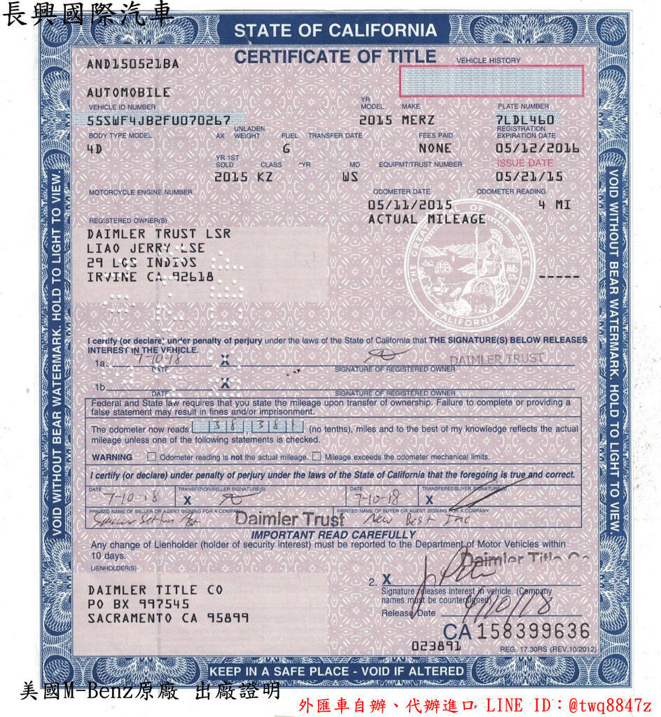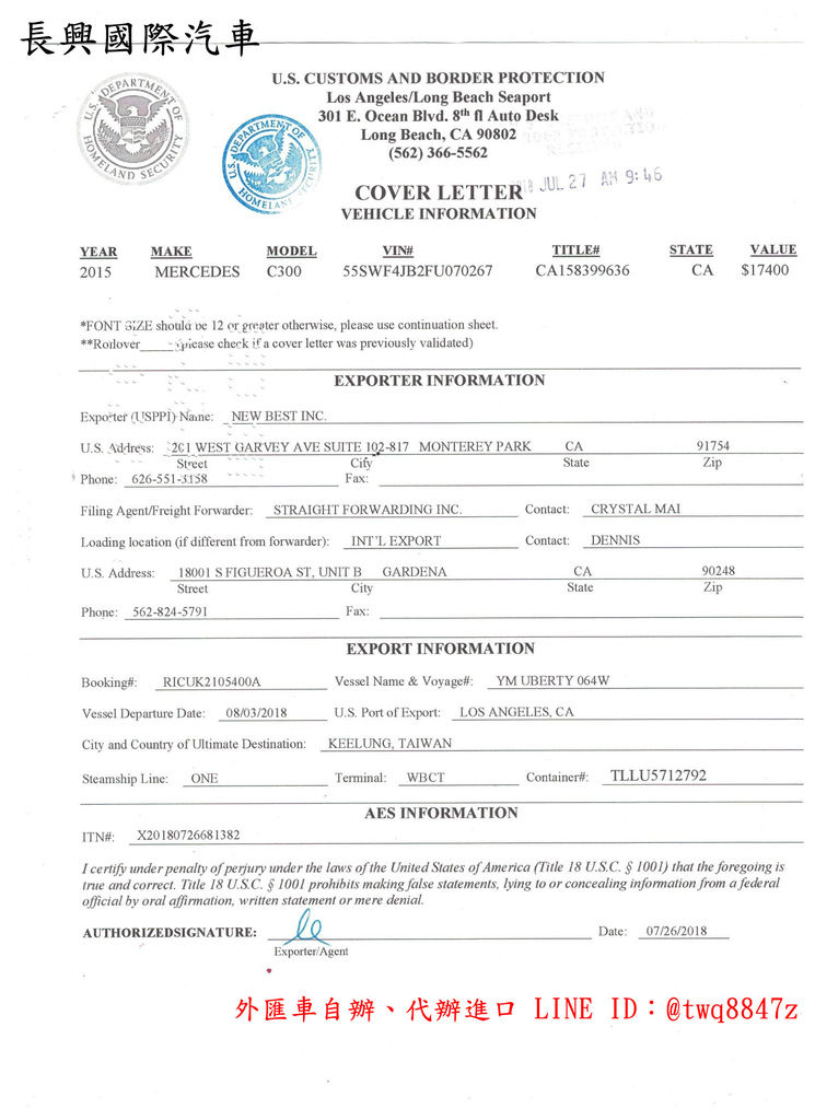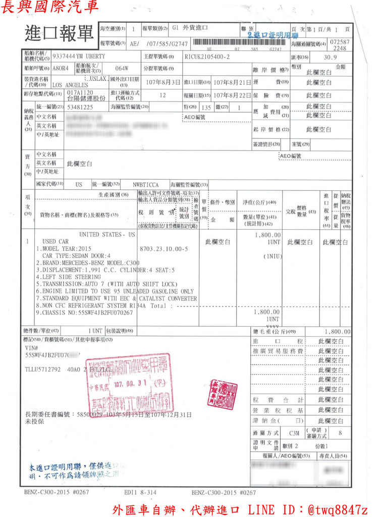 資料如果不完整,在車子從國外運回台灣時、是會影響所有相關程序作業的,