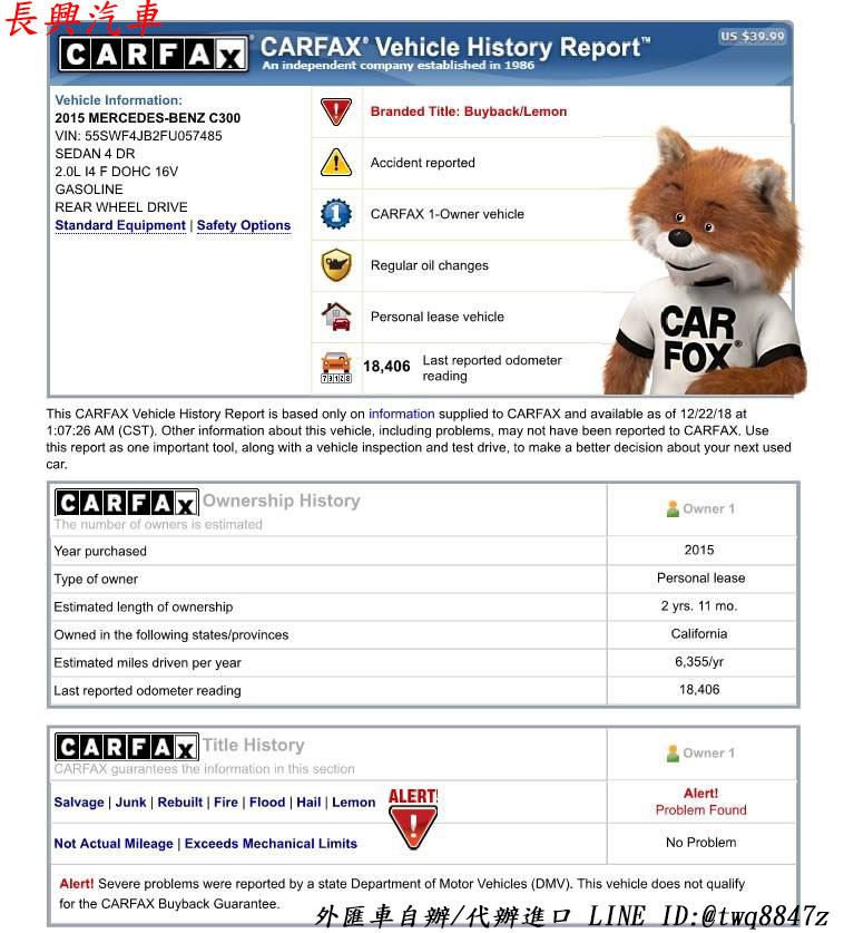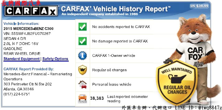 CARFAX是美國一家大型企業、最有公信力的第三方公正機構,擁有全美50個州、加拿大、墨西哥的汽車記錄。